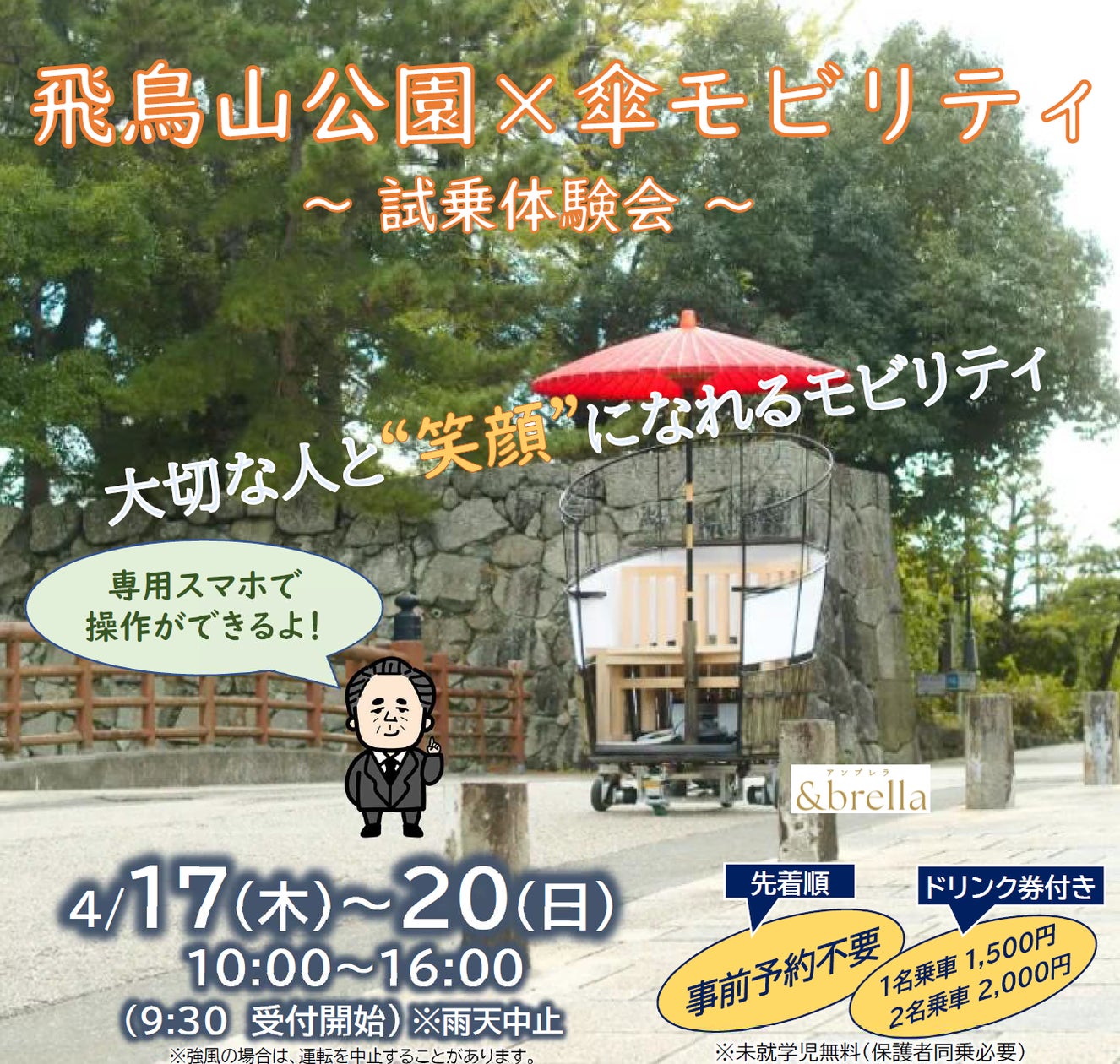 飛鳥山公園で「傘モビリティ試乗体験会」なるものが開催とのこと。